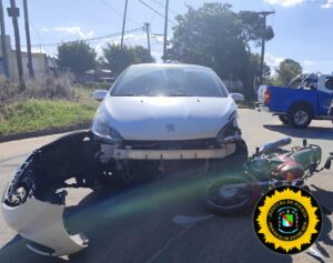 Un accidente ocurrió este martes por la tarde en Concepción del Uruguay, cuando un automóvil Peugeot 208 blanco embistió a una motocicleta Yamaha YBR 125 roja en la intersección de Alfonsina Storni y Misiones. El hecho, registrado alrededor de las 15:05, dejó como saldo a un hombre de 35 años
