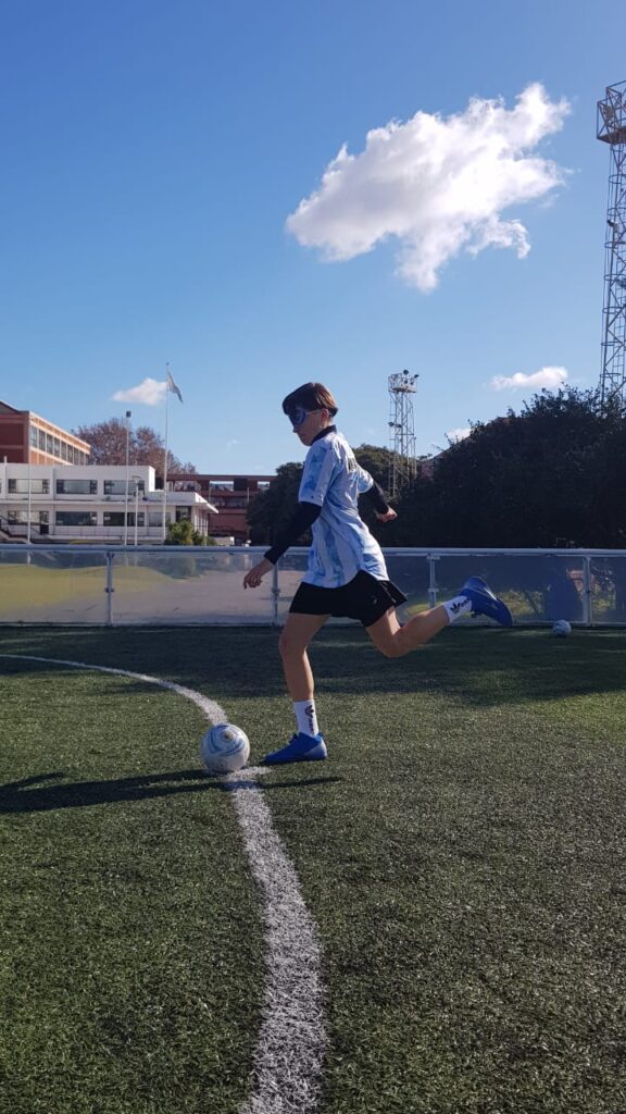 -La semana pasada inauguramos este centro de desarrollo de fútbol para ciegos de FADEC (Federación Argentina de Deportistas Ciegos). Fue una sorpresa, porque no la esperábamos. Nosotros venimos trabajando con distintas patologías de la visión: baja visión, visión escasa y ceguera desde hace años. Yo vengo trabajando con los chicos a nivel deportivo, tanto en atletismo como en diferentes disciplinas. En este caso, una de nuestras atletas, Brisa Roldán, que además es una apasionada del fútbol, tuvo la oportunidad de empezar a concentrar con Las Murciélagas el año pasado, a partir de noviembre. Fuimos convocadas tanto ella como jugadora de fútbol y yo como parte del cuerpo técnico, y estuvimos en distintas concentraciones. Las Murciélagas son el equipo femenino de Argentina de fútbol para ciegos y son bicampeonas mundiales. El año pasado salieron campeonas mundiales en India y el año anterior en China. Así que con mucho orgullo estamos vistiendo la camiseta argentina una vez más. En esta oportunidad fue una sorpresa: desde FADeC nos dieron la posibilidad de arrancar con la escuela de fútbol para ciegos y por primera vez Concepción del Uruguay tiene una escuela de fútbol para personas con discapacidad visual en Entre Ríos.