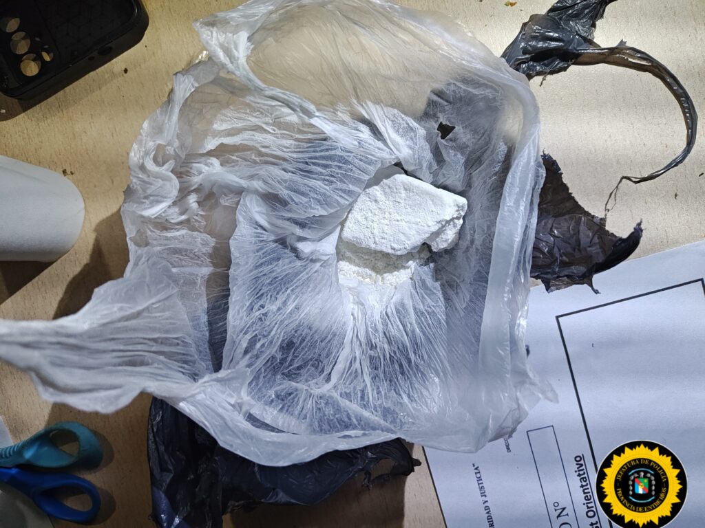 Como resultado del operativo, se secuestraron seis envoltorios de nylon con cocaína, un envoltorio con marihuana, y un billete de $500 impregnado con clorhidrato de cocaína, que pesaba 1,2 gramos. Además, se incautaron elementos utilizados para fraccionar droga: recortes plásticos, una tijera, una balanza digital con restos de cocaína, y dos teléfonos celulares.