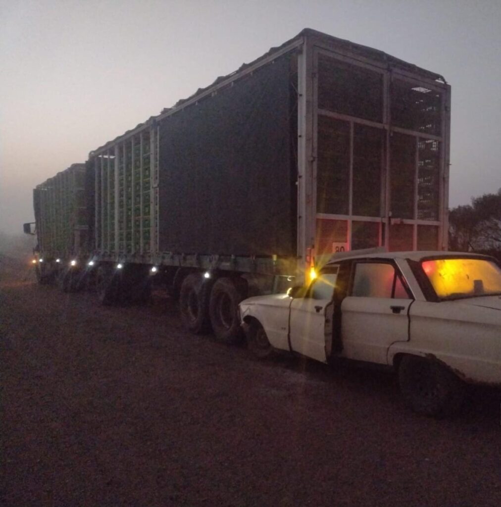 El vehículo de mayor porte, un Mercedes Benz blanco modelo 2005, era manejado por un hombre de 48 años domiciliado en Concepción del Uruguay. Al momento del choque, transportaba un acoplado cargado con cajas vacías para pollos.