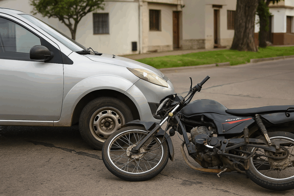 Este viernes, alrededor de las 12:30 del mediodía, se produjo un fuerte choque en la intersección de las calles Posadas y Ana Urquiza de Victorica, en el barrio Villa Las Lomas Norte de Concepción del Uruguay. En el hecho se vieron involucrados un automóvil Ford Ka, conducido por un joven de 22 años, y una motocicleta Zanella ZB 110 cc en la que se desplazaba un hombre de 45 años.