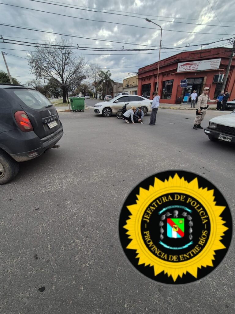 Minutos antes de las 17:00 de esa tarde una moto impactó el lateral izquierdo de un Volkswagen Virtus blanco. La mujer de 25 años que circulaba en la moto tuvo lesiones y el tránsito estuvo cortado al menos 45 minutos, teniendo que retomar los vehículos en diferentes sentidos y direcciones, trabajando en el lugar personal de la Policía de Entre Ríos y de la Dirección de Tránsito Municipal para ordenar el caos que se generó.