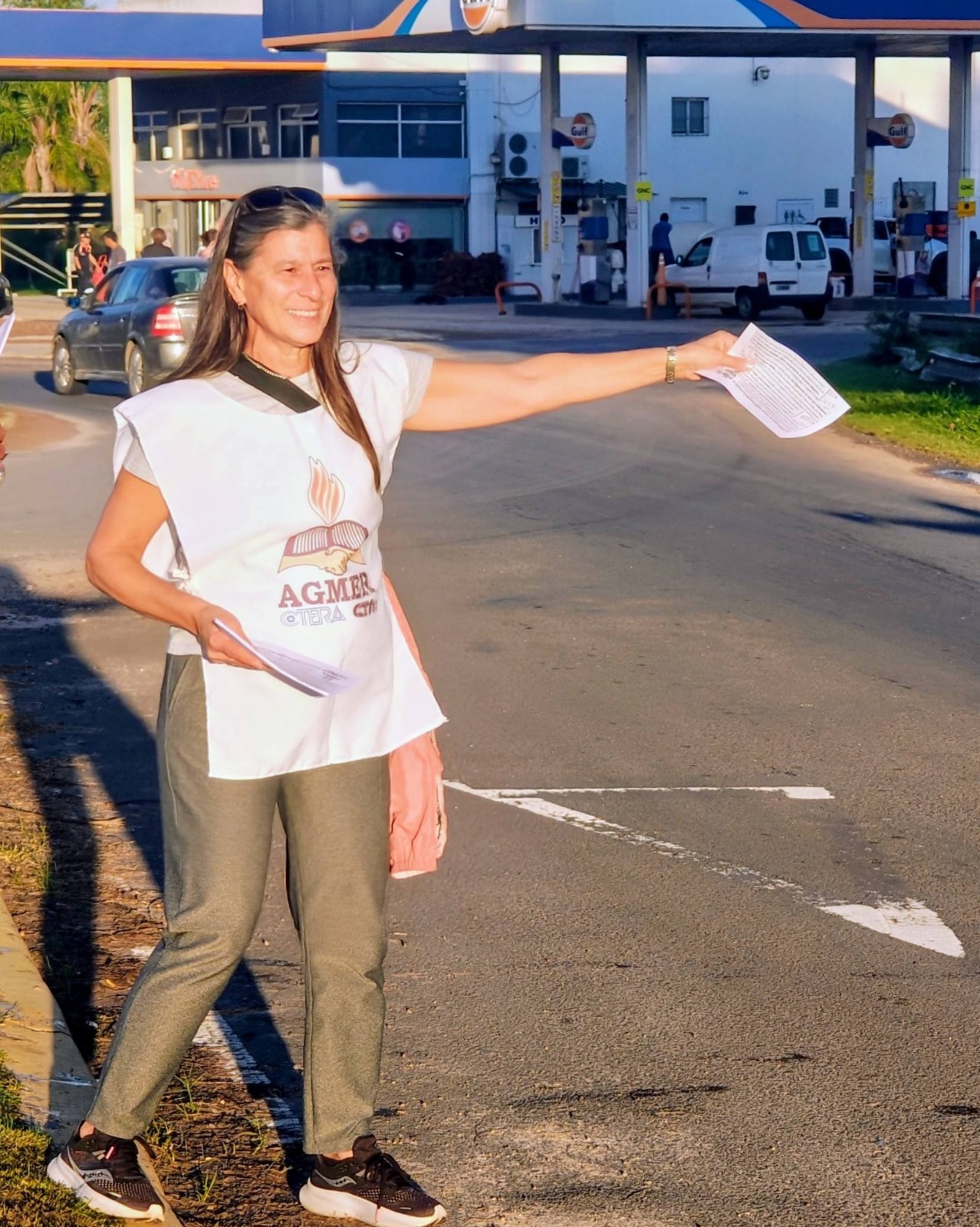 En Concepción del Uruguay, docentes de AGMER realizaron ayer una jornada de protesta en la rotonda de acceso a la ciudad y en distintos puntos de Entre Ríos, donde llevaron adelante volanteadas para visibilizar el reclamo salarial del sector.