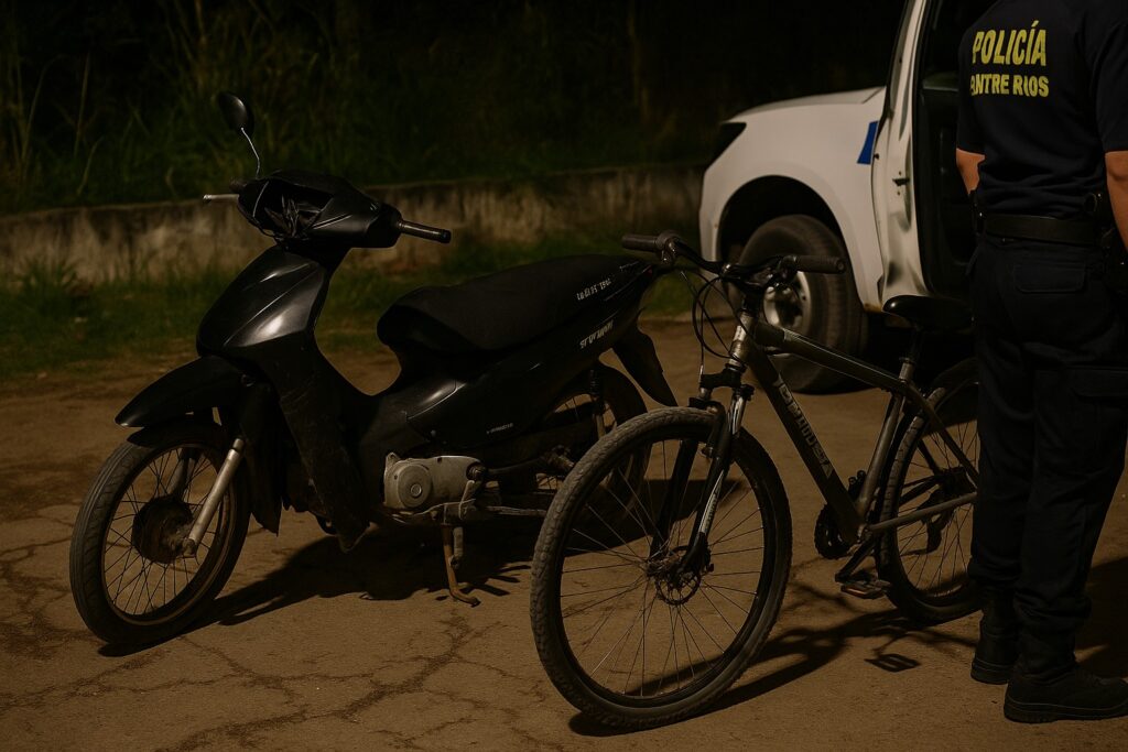 Durante la madrugada de este jueves, efectivos de la Policía de Entre Ríos lograron recuperar dos vehículos que habían sido denunciados como robados, en operativos realizados en distintos puntos de Concepción del Uruguay. Se trata de una motocicleta y una bicicleta, ambas localizadas a pocas horas de reportarse sus sustracciones.