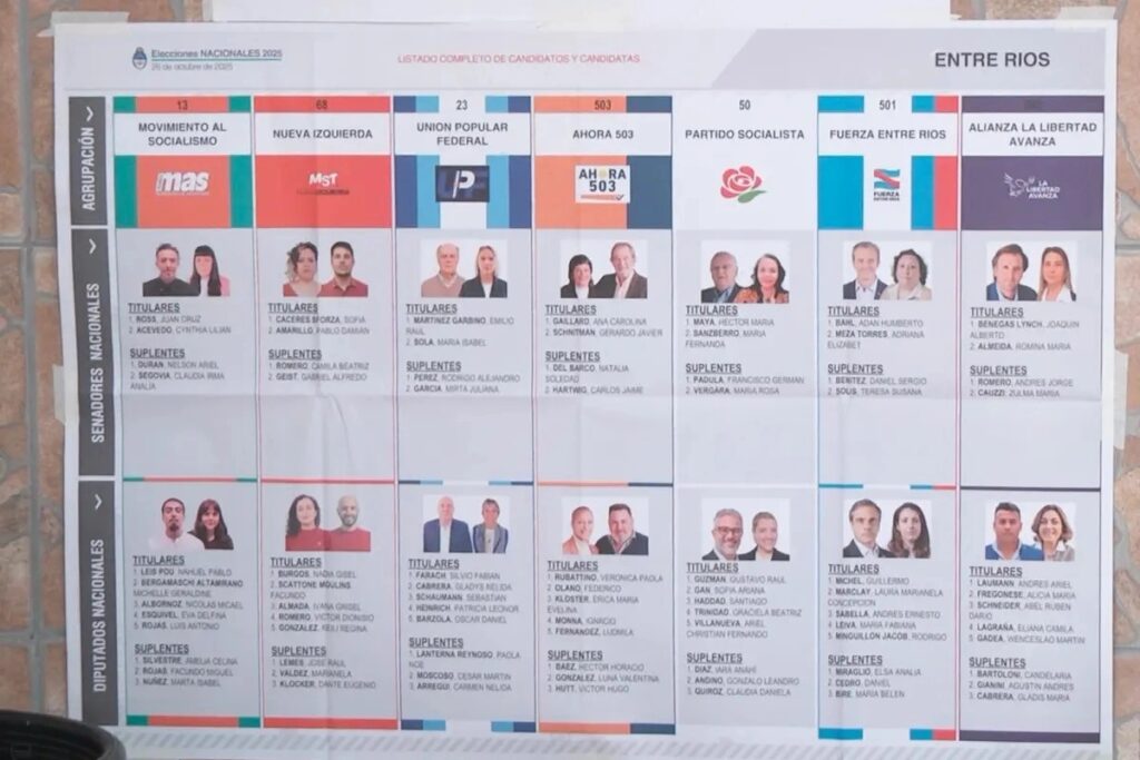 El escrutinio definitivo de las elecciones legislativas confirmó que la Alianza La Libertad Avanza (ALLA), integrada por La Libertad Avanza, el PRO y un sector de la UCR, obtuvo una amplia victoria en 14 de los 17 departamentos de Entre Ríos, incluyendo a Concepción del Uruguay, donde el espacio se impuso con una diferencia superior a los 10.000 votos sobre Fuerza Entre Ríos (FER).