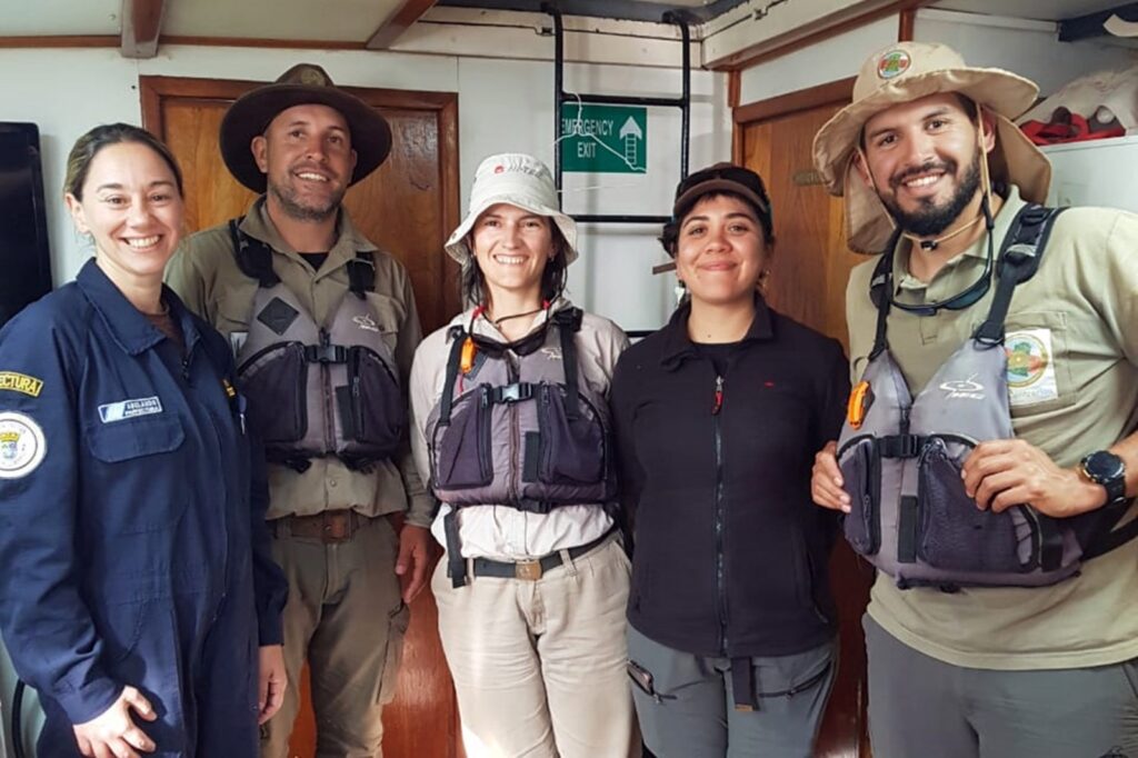 El operativo contó con el respaldo logístico de la embarcación del parque, y fue liderado por la prefecta Mariana Abelando, junto a una tripulación de ocho prefectos a bordo del barco científico “Dr. Leloir”.