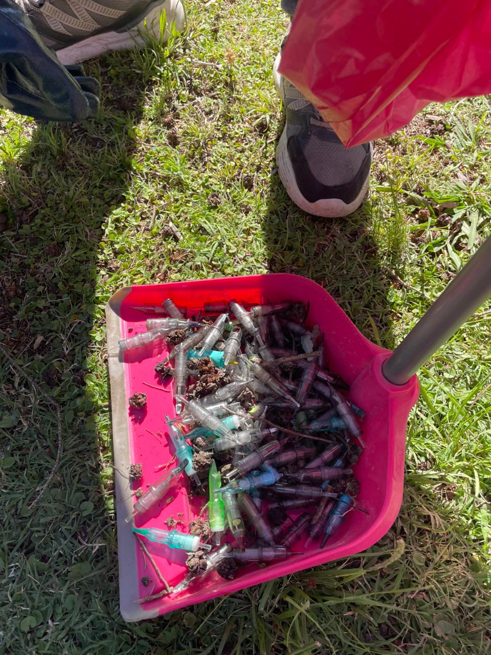 Personal del servicio de recolección de residuos patológicos retiró una bolsa repleta de jeringas usadas que alguien arrojó en la plazoleta de bulevar Yrigoyen, frente a Parque La Loba. La situación generó preocupación porque los elementos quedaron dispersos en un sector público muy transitado.