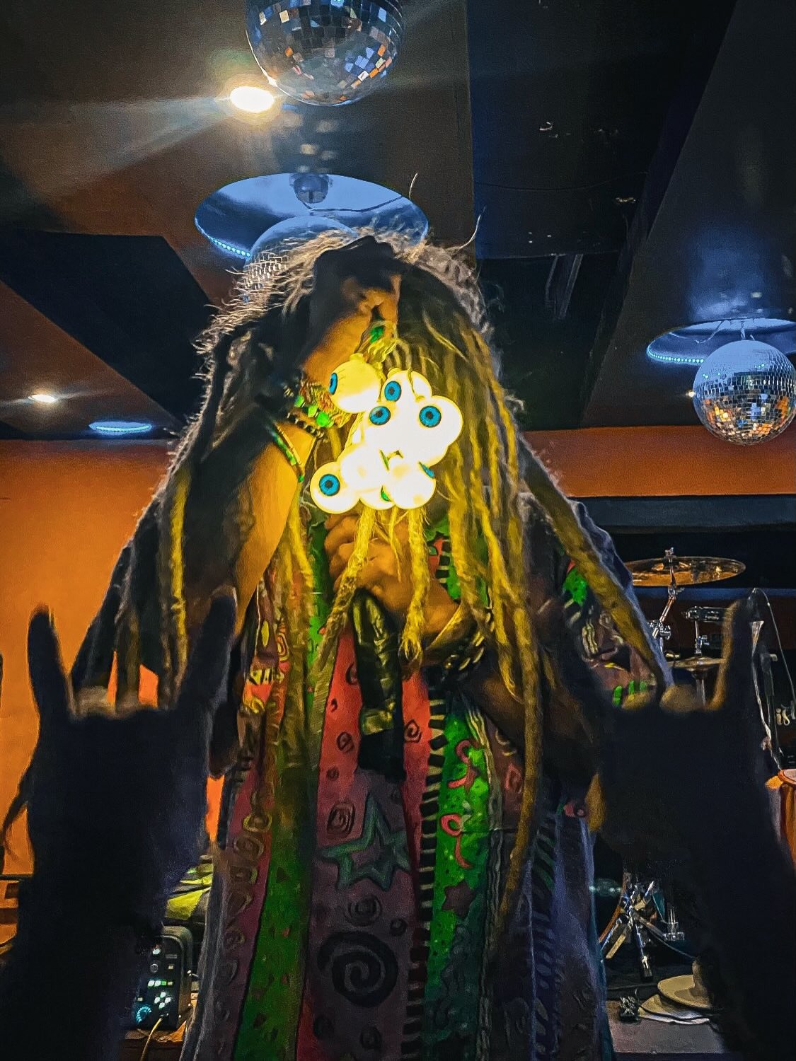 El cantante apareció en el escenario con su estética actual, con camisa colorida y vincha, y mantuvo una energía constante con baile, espuma lanzada hacia el público y una actitud intensa durante todo el show. En un momento del recital Nekro quedó solo en el escenario con su guitarra y tocó algunos temas acústicos mientras los músicos descansaban.