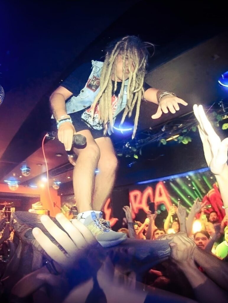 El show también dejó escenas típicas de Boom Boom Kid. Nekro se paró de manos varias veces sobre el escenario y sostuvo una energía física notable a sus 54 años. Durante la canción “Bad Influence”, una balada del disco Anestesia, el cantante sacó una tabla de surf y recorrió el público mientras la gente lo sostenía en alto.
