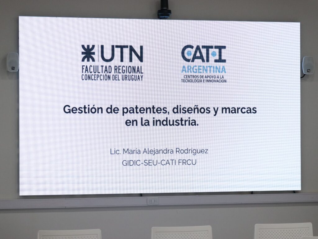 La capacitación sobre “Gestión de Patentes, Diseños y Marcas en la Industria” reunió este miércoles a investigadores, docentes, estudiantes y empresarios en el Polo Tecnológico La Nube de Concepción del Uruguay. La actividad fue organizada por la UTN Facultad Regional y estuvo a cargo de la licenciada María Alejandra Rodríguez, responsable del Centro CATI (Centro de Apoyo a la Tecnología y la Innovación).