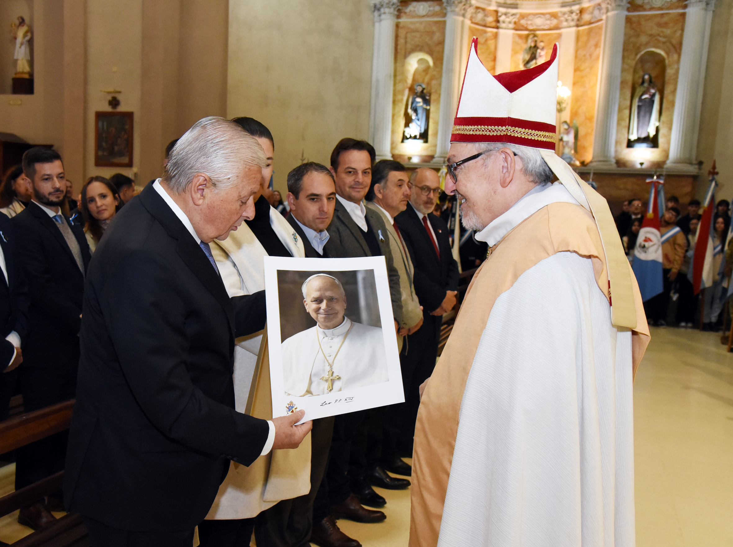 La jornada comenzó temprano, con el izamiento del pabellón nacional en el mástil central de la plaza. Luego, se llevó a cabo el tradicional Tedeum en la Basílica Inmaculada Concepción, a cargo del Obispo Diocesano, Monseñor Héctor Zordán. Ambas actividades contaron con la presencia del intendente José Lauritto, quien también presidió el acto central.