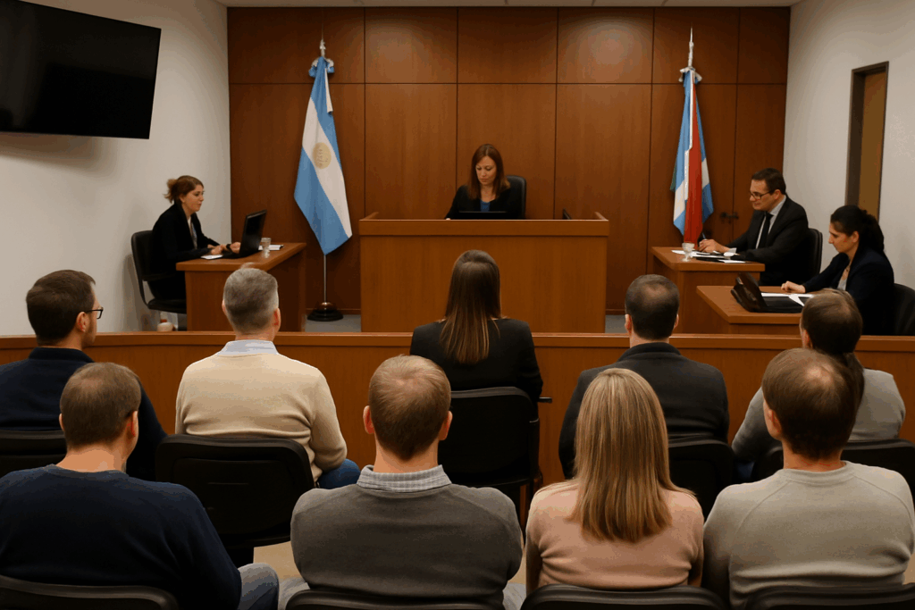La jueza técnica del proceso es la vocal Melisa María Ríos, quien dirige las audiencias y garantiza el cumplimiento del procedimiento. Por el Ministerio Público Fiscal, actúa la fiscal María Albertina Chichi, mientras que la defensa del imputado, quien llega al juicio en libertad, está a cargo de la defensora oficial Romina Pino.