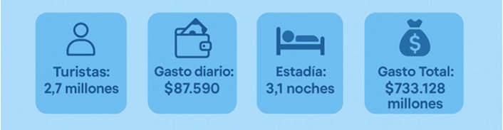 Los datos muestran un movimiento turístico sostenido a pesar del contexto económico. El gasto promedio por persona fue de $87.590 diarios, con una estadía media de 3,1 días, lo que implicó un consumo total estimado en $271.529 por visitante. Este dinero se distribuyó principalmente en alojamiento, gastronomía, transporte, actividades recreativas y compras.