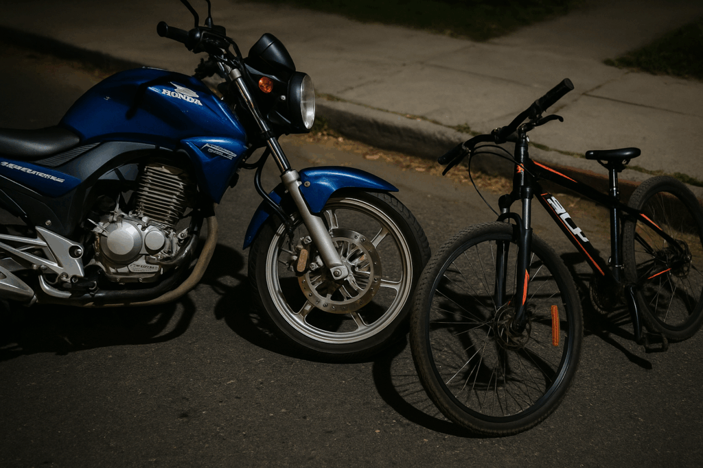 El hecho ocurrió cerca de las 21:30 horas, cuando un hombre de 28 años, que manejaba una moto Honda Twister 250 CC, impactó contra una bicicleta SLP negra con detalles rojos, conducida por un adolescente de 17 años. Ambos circulaban en la misma dirección, de este a oeste, y según el testimonio del motociclista, no llegó a ver al ciclista a tiempo para evitar el choque.