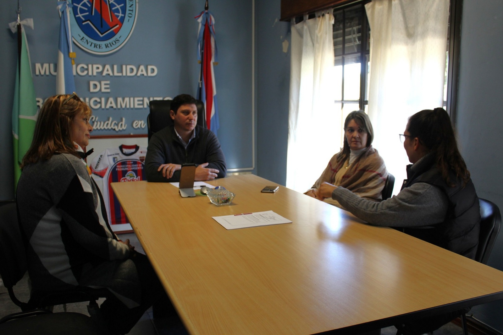 Este miércoles al mediodía, el intendente de Pronunciamiento Ricardo Sandoval y la viceintendenta Marcela Dallazuana recibieron en el edificio municipal a la nueva directora de la Escuela Secundaria N°6 “Fraternidad”, Dalila Martínez, y a su antecesora, Idalia Wicky, quien recientemente se ha jubilado tras una extensa y destacada trayectoria al frente de la institución.