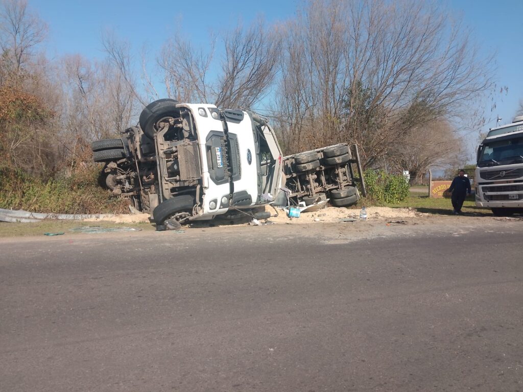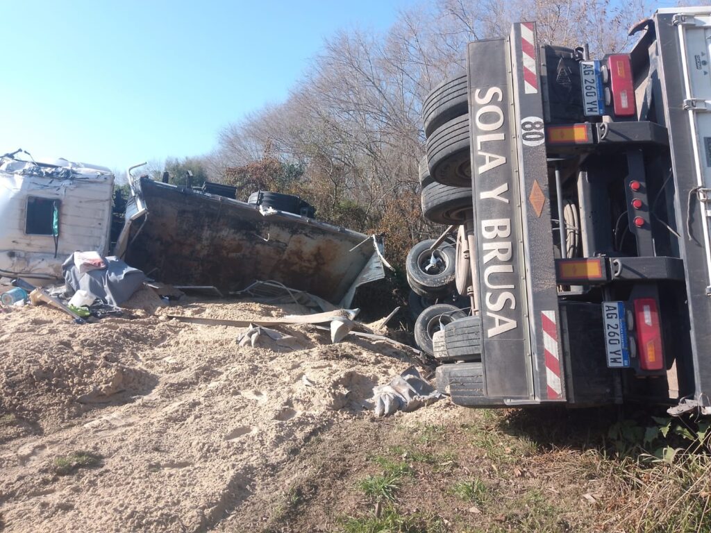 Según pudo confirmar personal policial interviniente, un camión protagonizó un despiste que terminó en vuelco. El chofer fue rápidamente asistido y trasladado al hospital más cercano. A pesar de la violencia del impacto, se informó que se encontraría fuera de peligro.